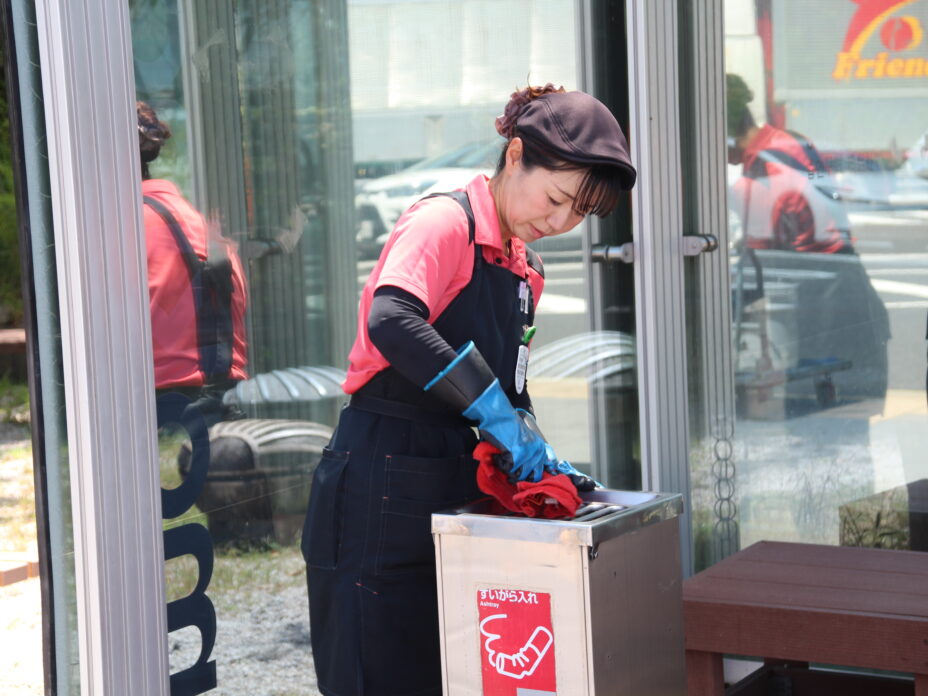 主な仕事は、トイレ、洗面の清掃、ゴミの回収や分別です。