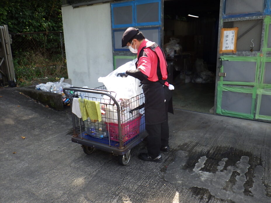 主な仕事は、トイレ、洗面の清掃、ゴミの回収や分別です。