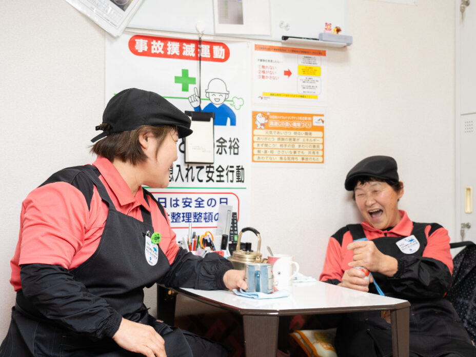 清掃員の世代も様々で、子育て真っ只中の世代から、子育てを終えた世代まで幅広い方が活躍中。